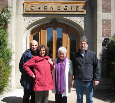 photos clockwise: Louisville writer Ellen Birkett Morris held by her father; Calling; Woodcut of a Field of Wheat by Judith Joseph; Penny Nichols and Barr at Northwestern University; Ani Shua at Lake Forest College; Barr with Writers Workshop member Mare Swallow. Center: members of Artist Beit Midrash